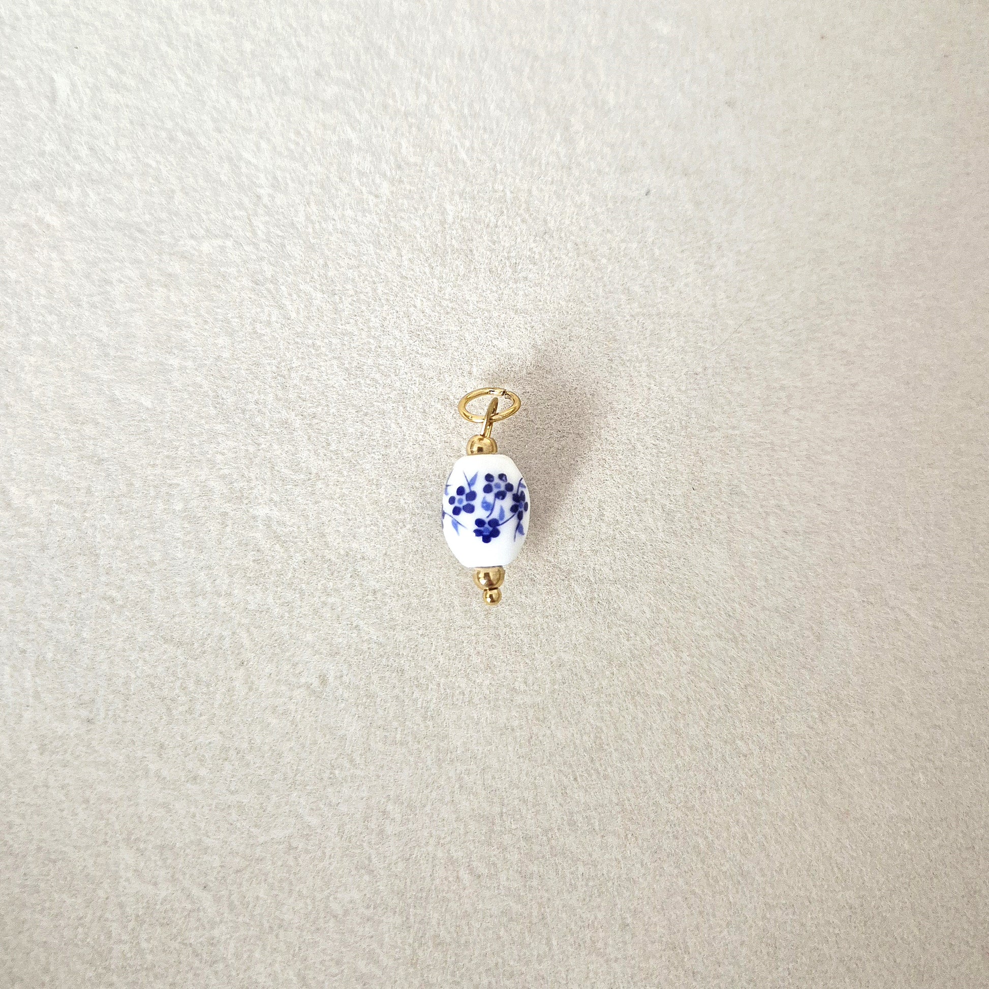 Charm delicato impreziosito da piccoli fiori blu dipinti a mano. Un tocco di freschezza e natura che aggiunge eleganza e colore a ogni tuo gioiello.