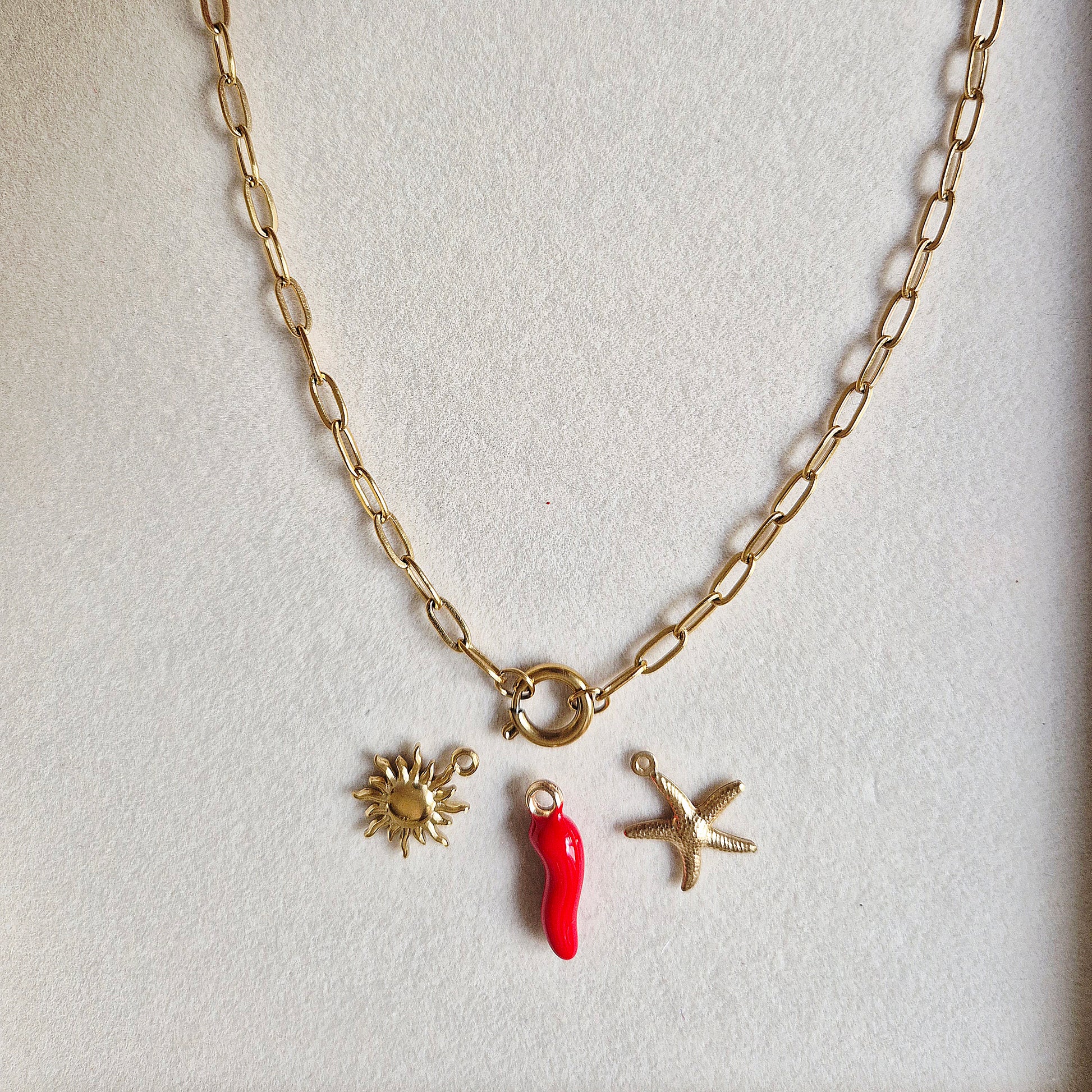 Una collana raffinata con clip apribile, pensata per accogliere i tuoi charm più speciali.